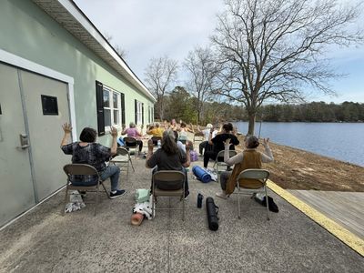 More than a dozen people took advantage of the unseasonably spring-like weather for the launch of Wellness Wednesdays featuring Chair Yoga at the Clubhouse on Wednesday, March 11.